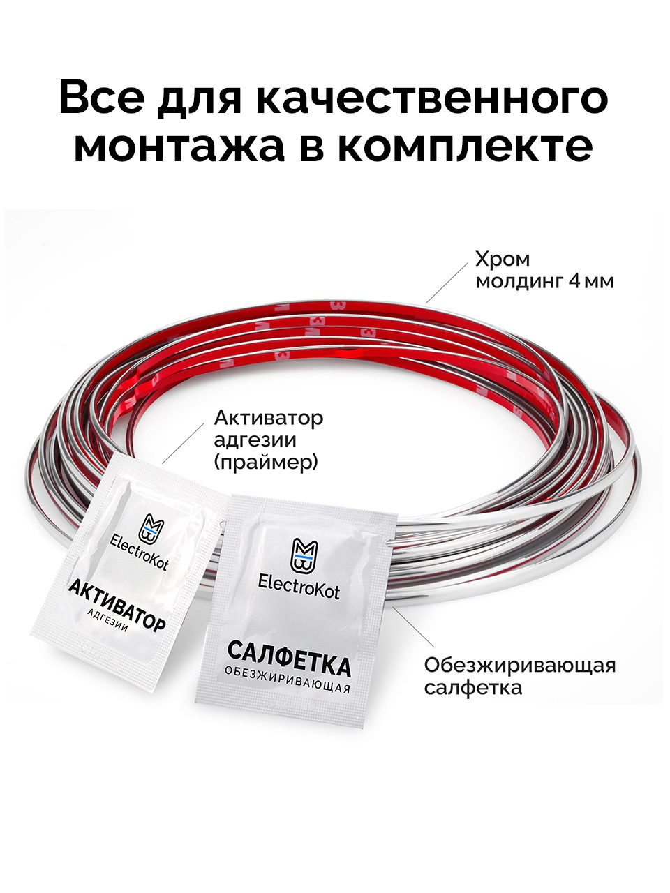 Хромированный молдинг для автомобиля на двустороннем скотче шириной 4 мм и толщиной 2 мм.