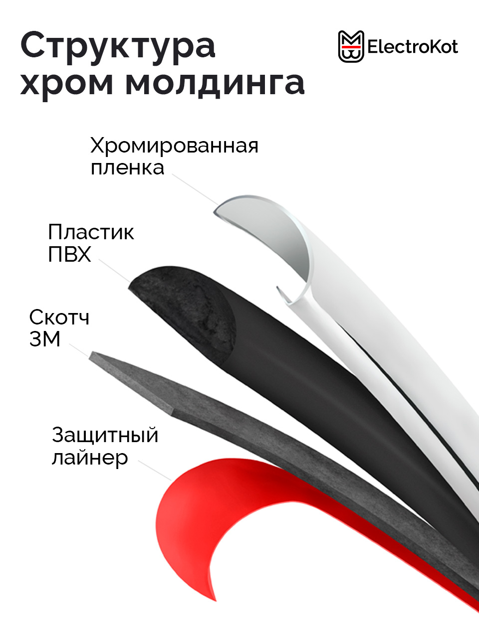 - Клейкое основание - оригинальный скотч 3М. В отличие от более дешевых аналогов, держит намертво. Благодаря ему молдингу не страшны жара, морозы и мойка под давлением