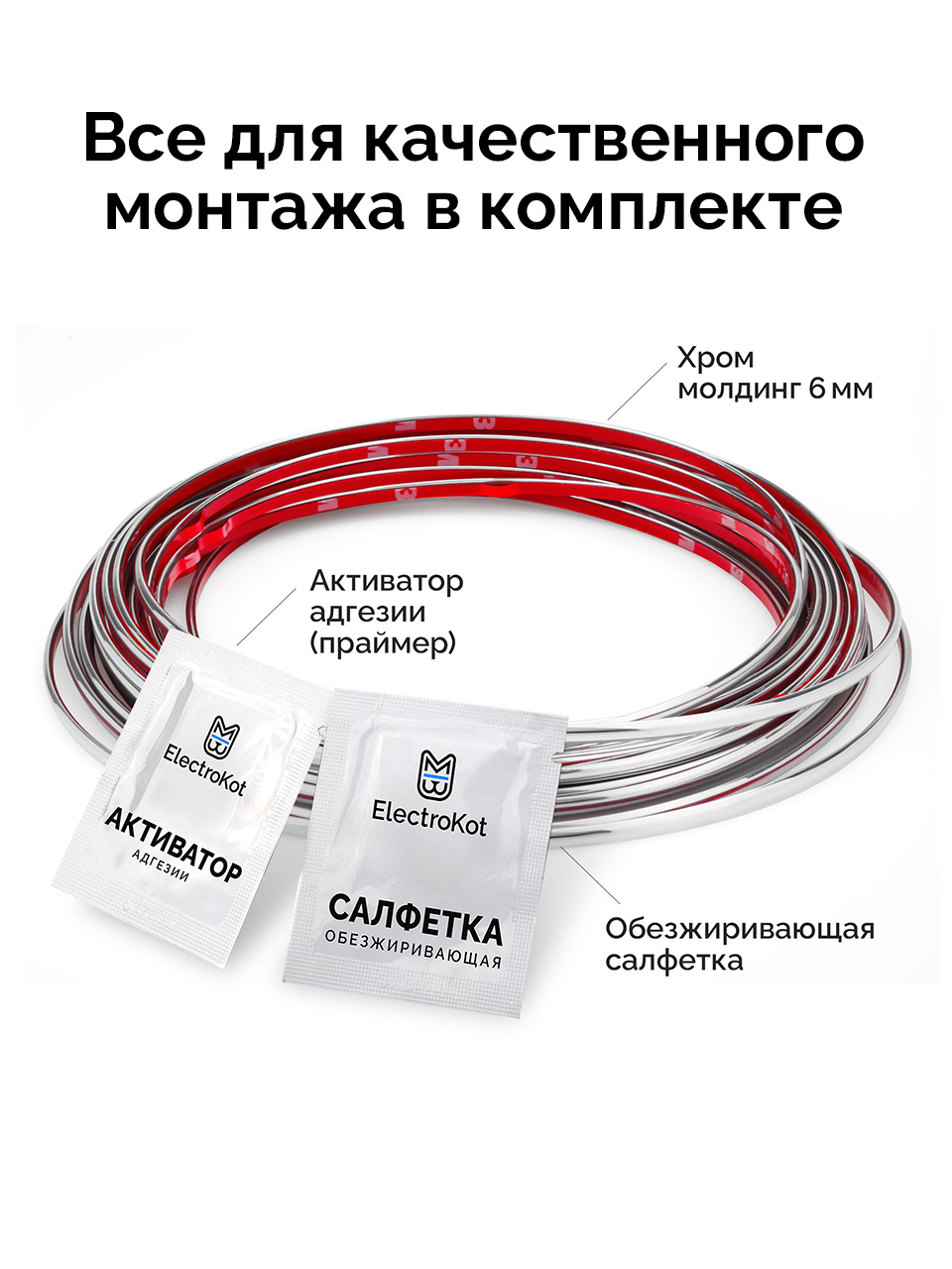Хромированный молдинг для автомобиля на двустороннем скотче шириной 6 мм и толщиной 2 мм.