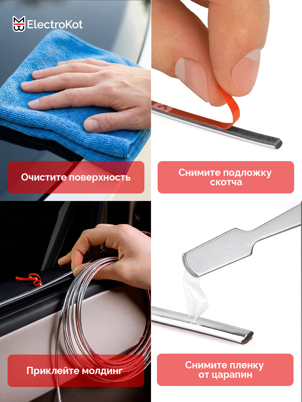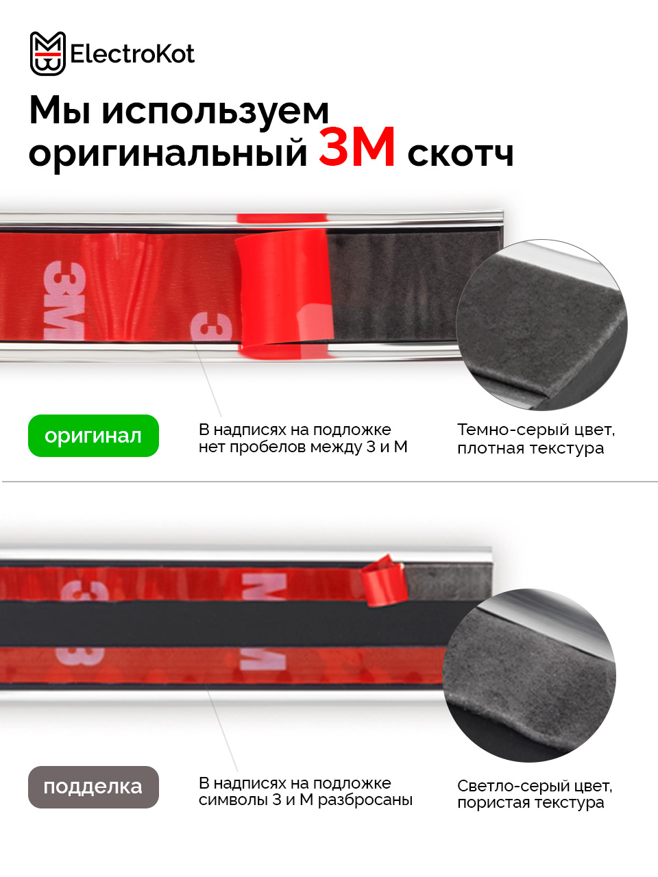- Клейкое основание - оригинальный скотч 3М. В отличие от более дешевых аналогов, держит намертво. Благодаря ему молдингу не страшны жара, морозы и мойка под давлением