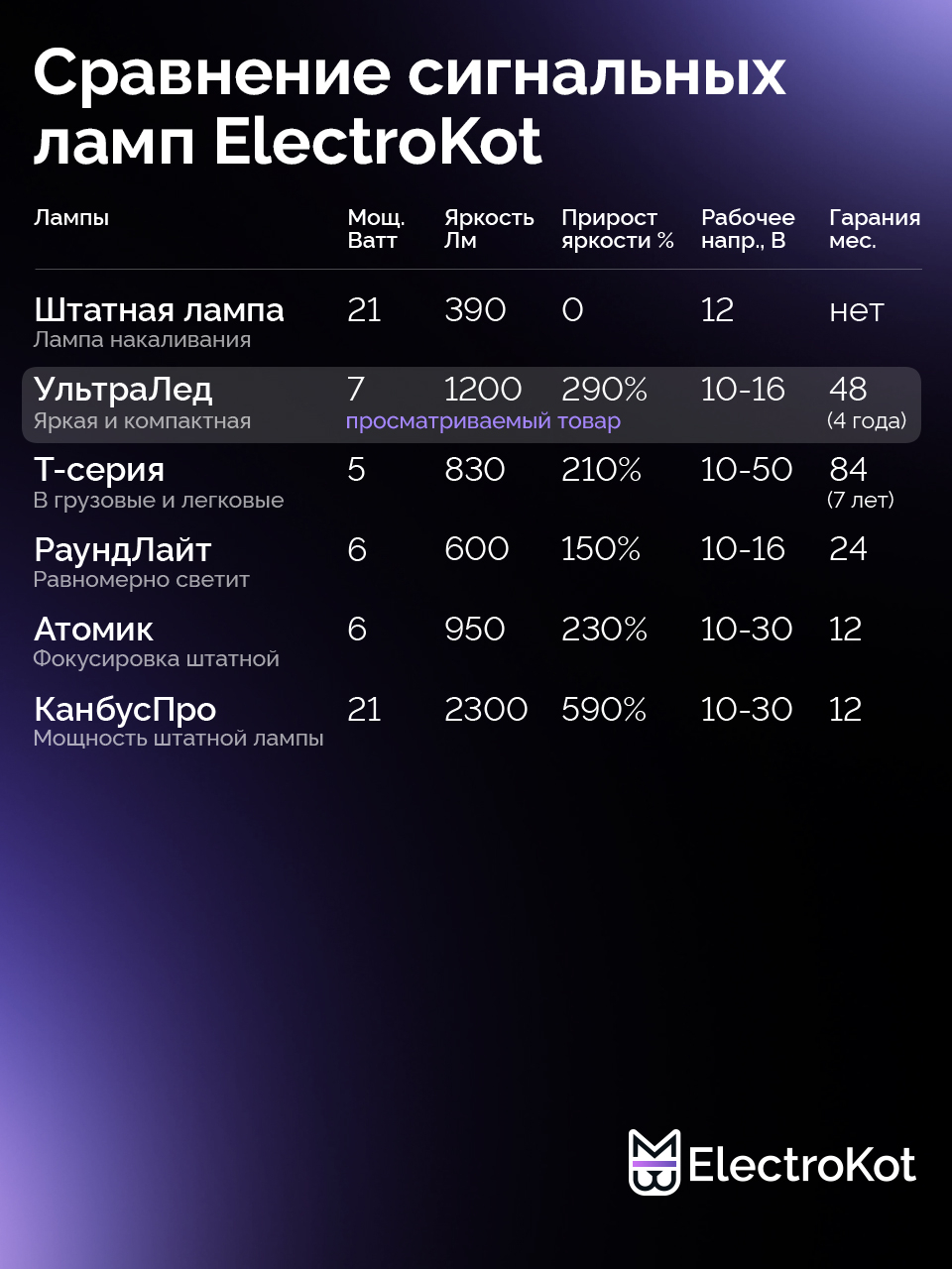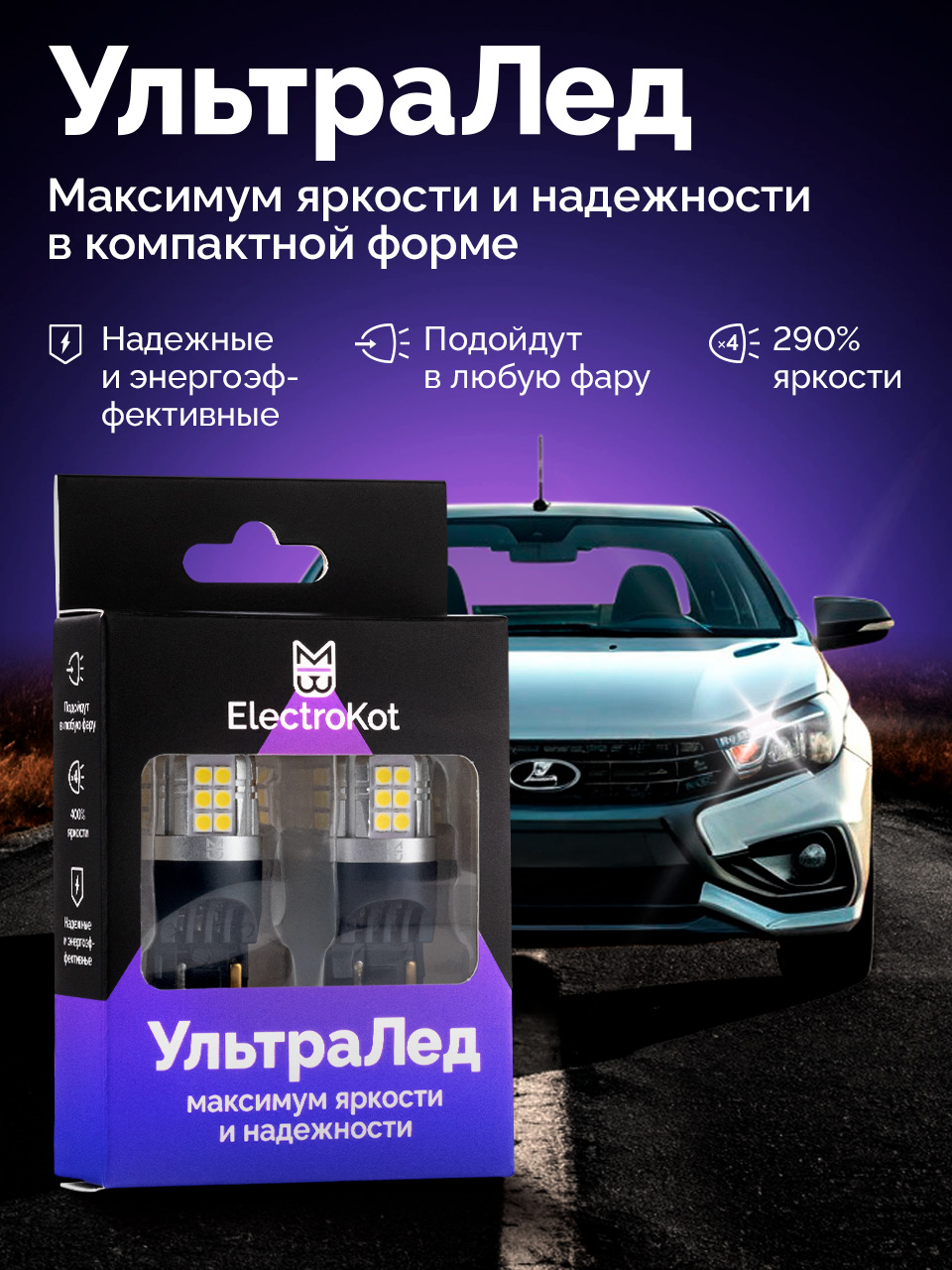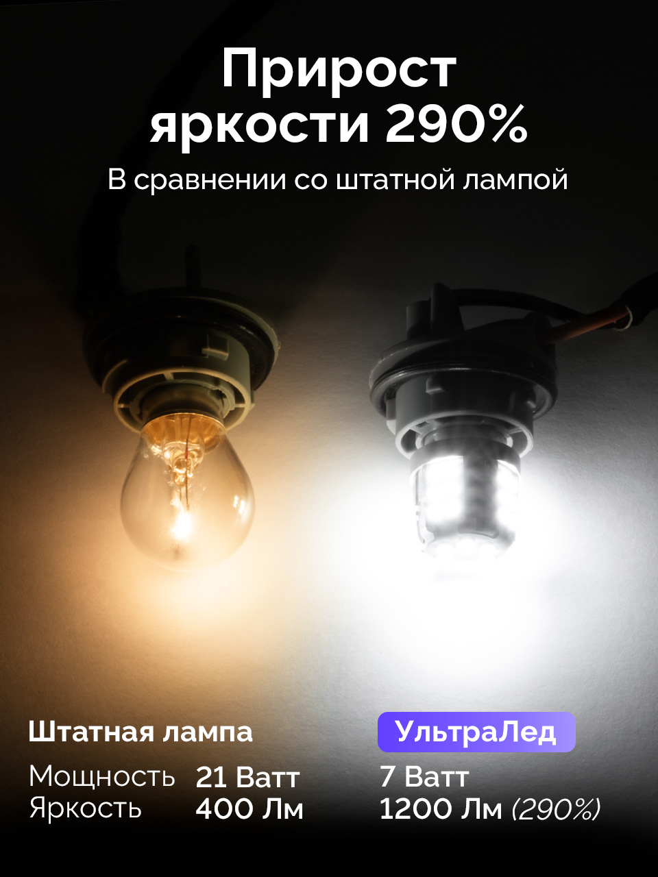 Светодиодные лампы для автомобилей серии УльтраЛед воплощают максимум яркости и надежности при сохранении компактных размеров. 300% яркости в сравнении со стандартной лампой накала.