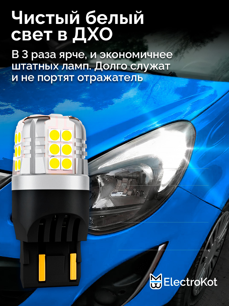 - Прирост яркости по сравнению с лампой накала делают автомобиль заметнее и днём и ночью