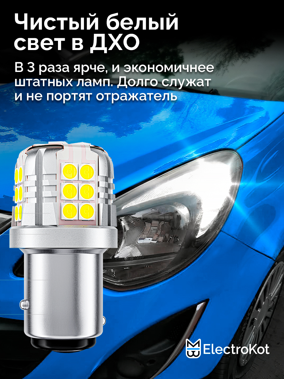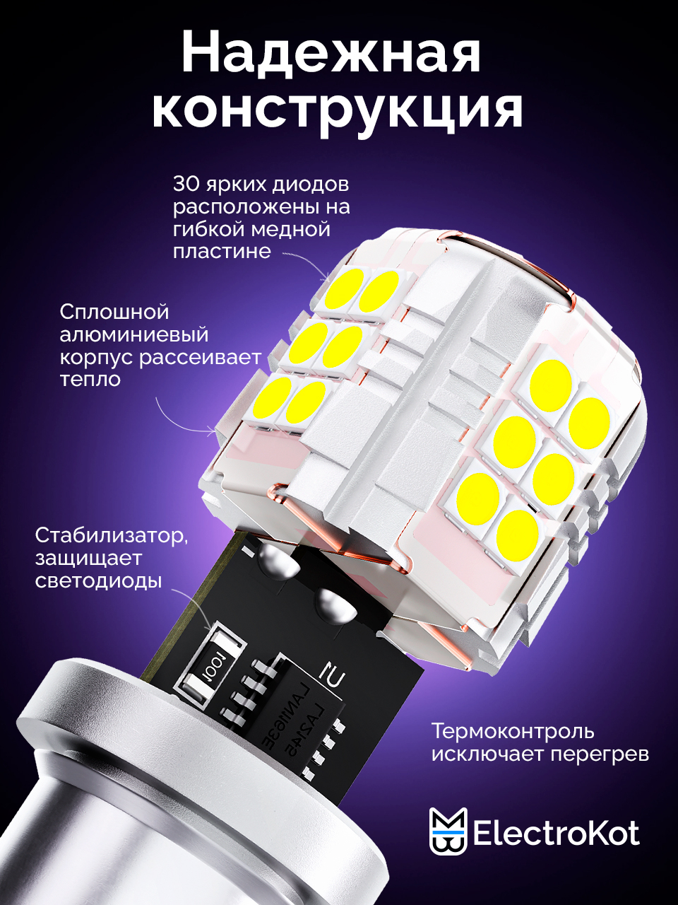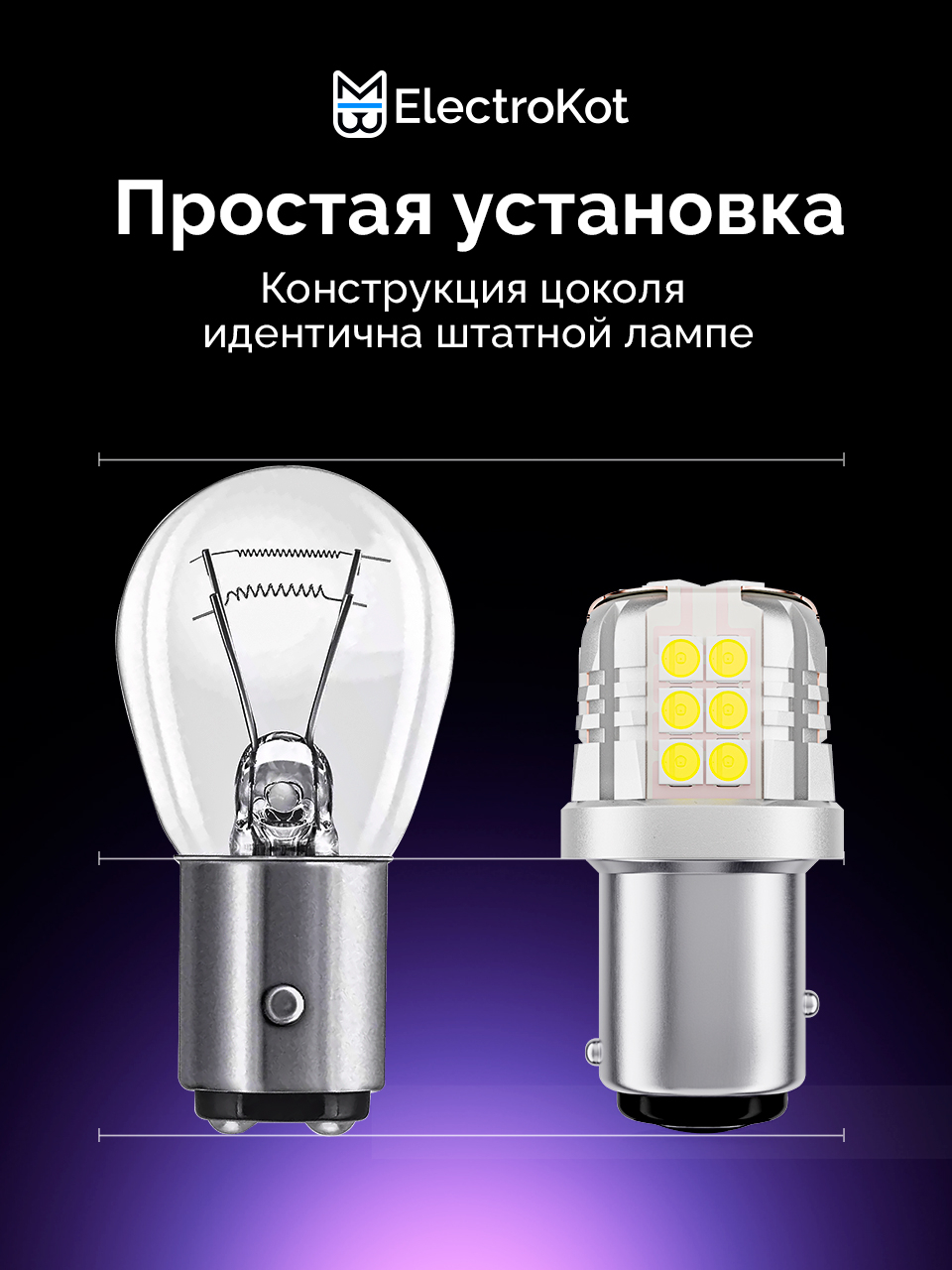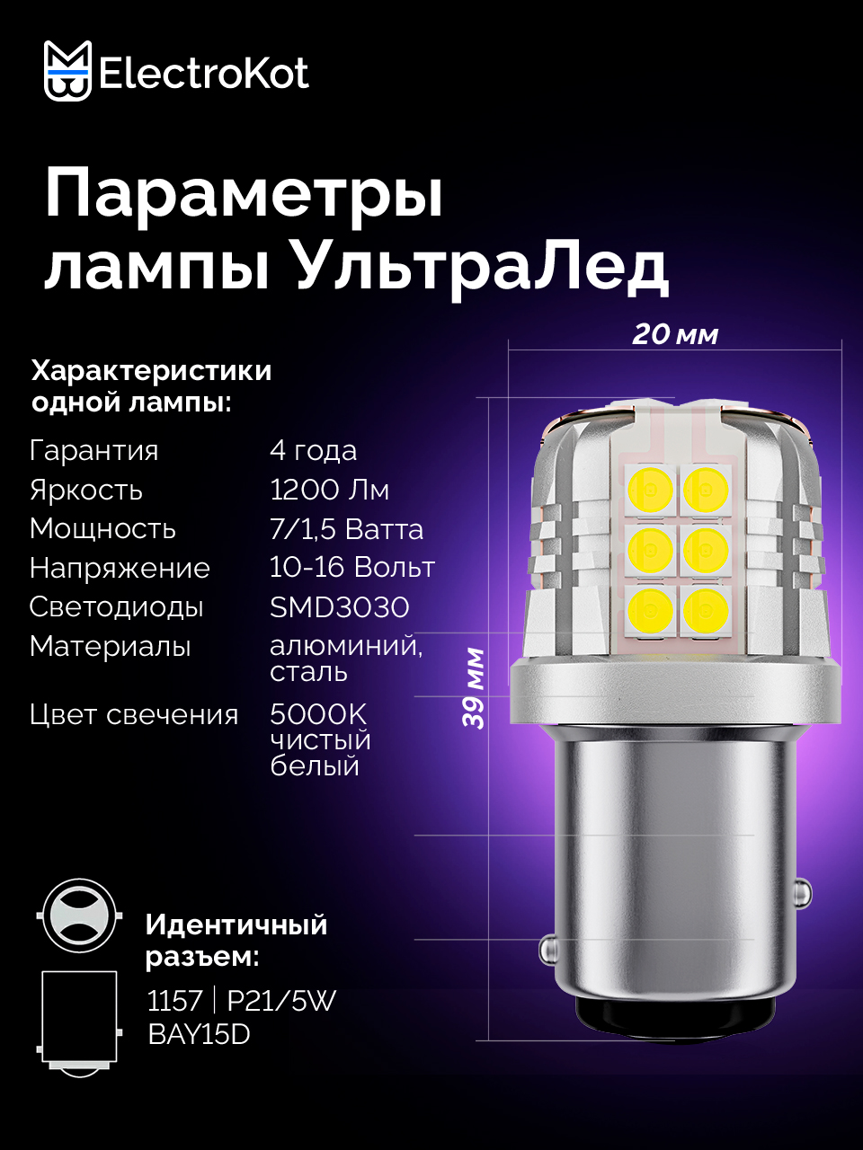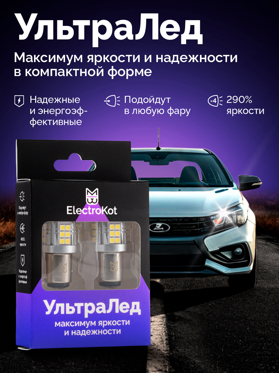 Светодиодная лампа для авто ЭлектроКот УльтраЛед P21/5W BAY15D чистый белый 5000K 2 шт