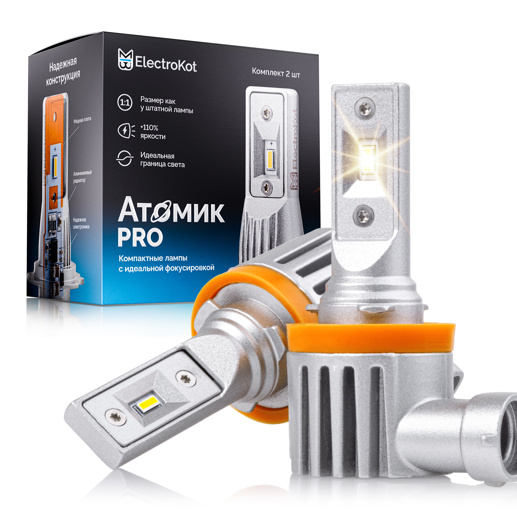 Светодиодные лед лампы для авто ElectroKot Атомик PRO - серия компактных, ярких, универсальных ламп головного света. До 230% яркости по сравнению со штатными лампами.
