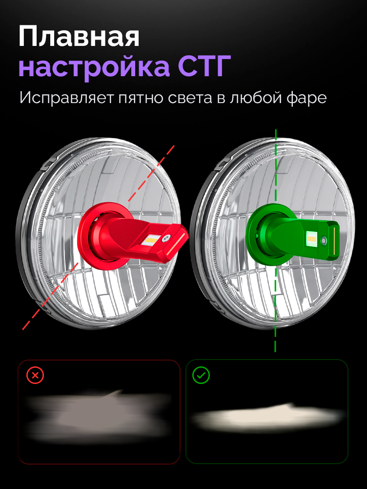 - Плавная регулировка лампы в фаре для точной настройки СТГ