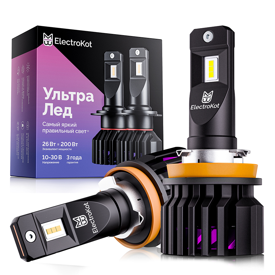 Светодиодные лампы для авто ЭлектроКот УльтраЛед gen2 H11 белый 6000K 2 шт