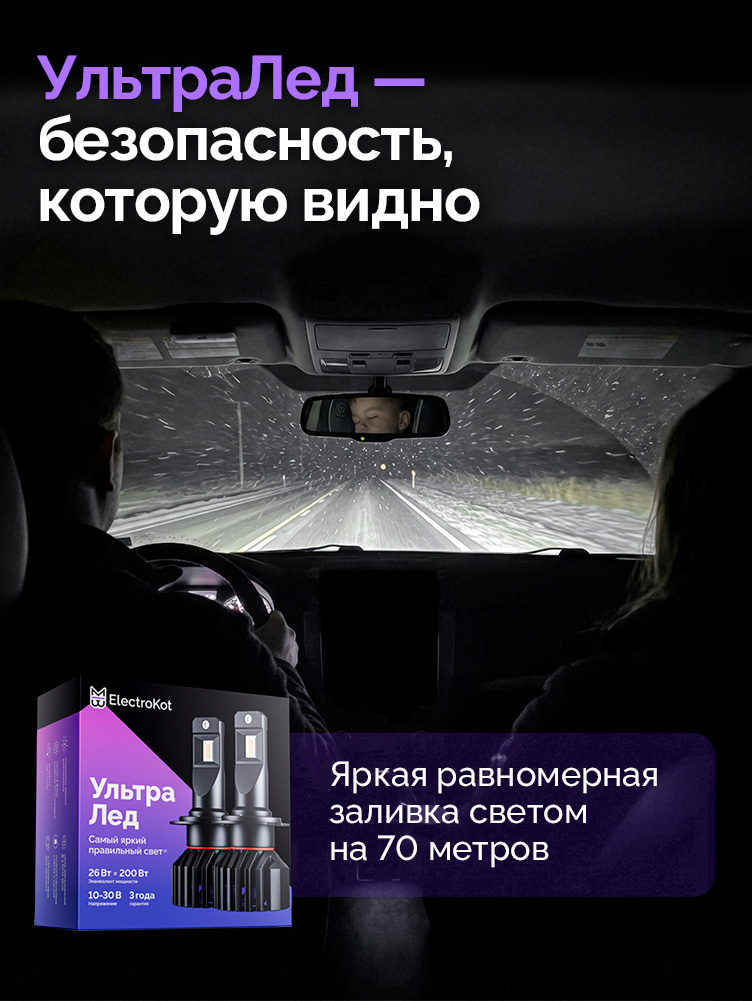 Светодиодные лампы для авто ЭлектроКот УльтраЛед - идеальное решение для фар с отражателями. Наша самая яркая модель с идеальной фокусировкой. Разработку этой модели мы вели несколько лет, основываясь на нашем опыте работы со светодиодными лампами головного освещения с 2013 года.