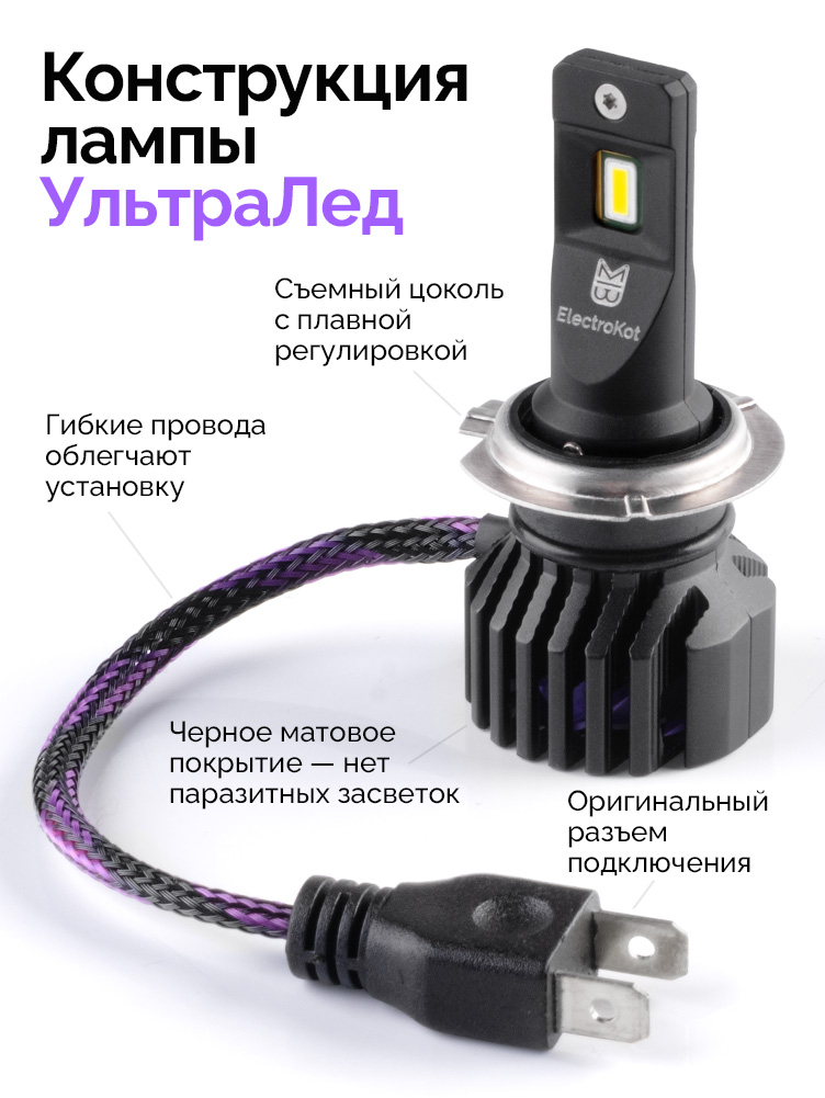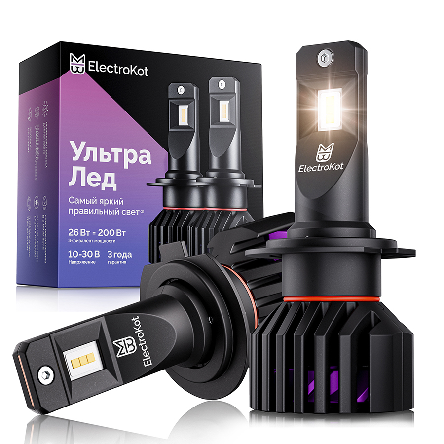 Светодиодные лампы для авто ЭлектроКот УльтраЛед - идеальное решение для фар с отражателями. Наша самая яркая модель с идеальной фокусировкой. Разработку этой модели мы вели несколько лет, основываясь на нашем опыте работы со светодиодными лампами головного освещения с 2013 года.