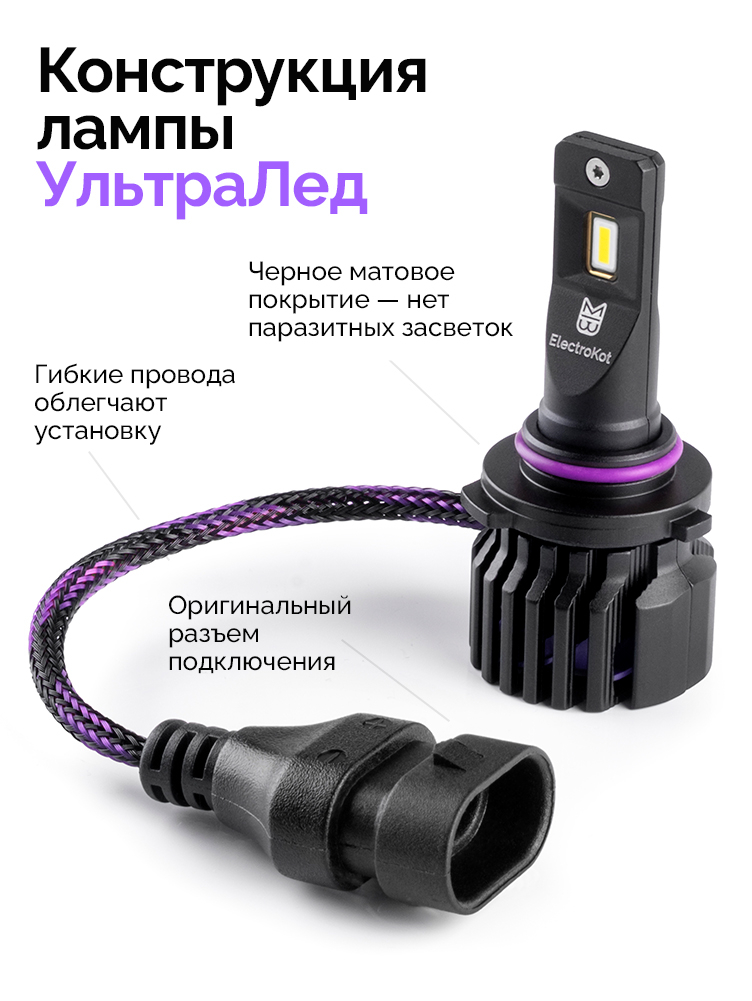 Светодиодные лампы для авто ЭлектроКот УльтраЛед - идеальное решение для фар с отражателями. Наша самая яркая модель с идеальной фокусировкой. Разработку этой модели мы вели несколько лет, основываясь на нашем опыте работы со светодиодными лампами головного освещения с 2013 года.