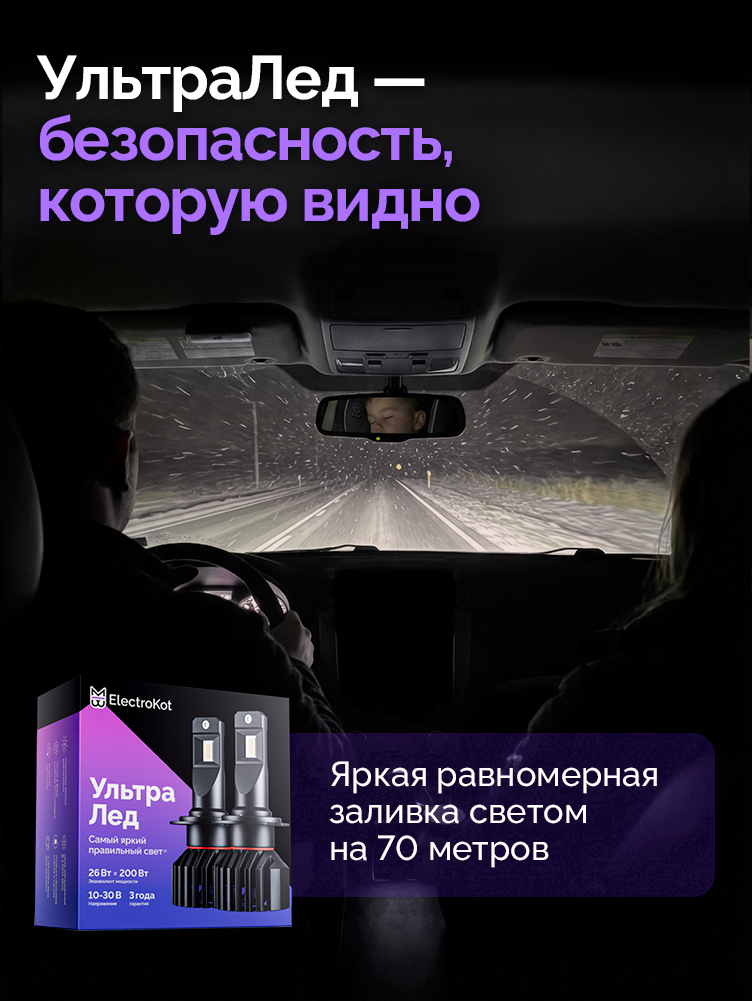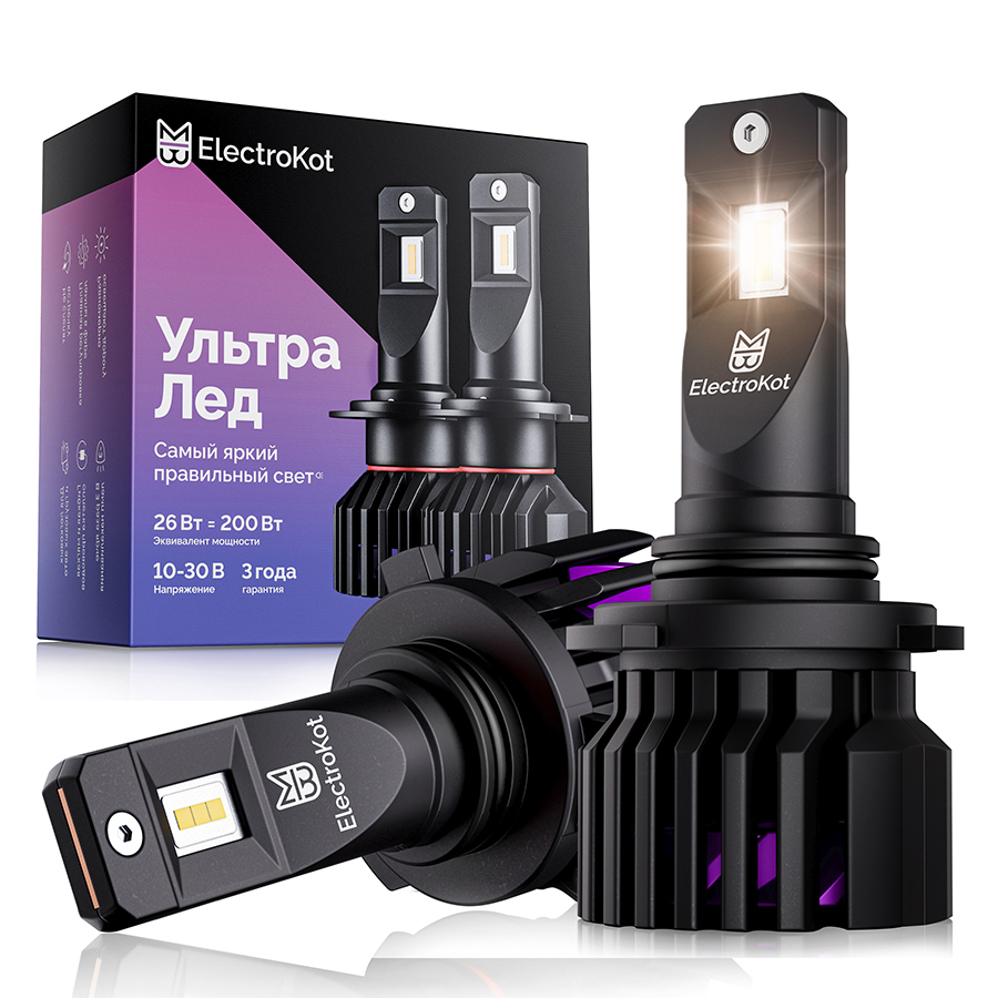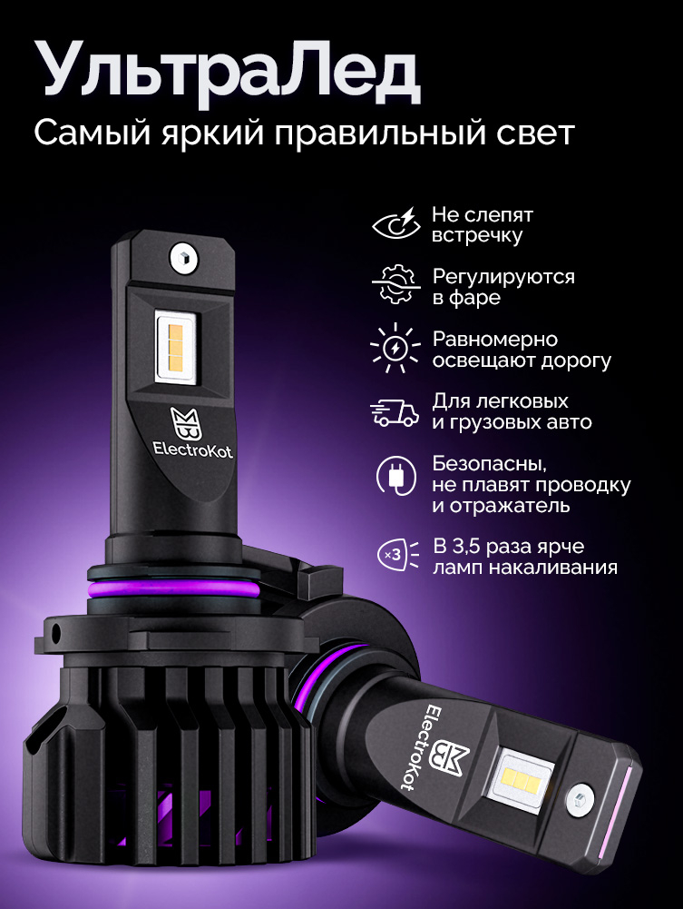 Светодиодные лампы для авто ЭлектроКот УльтраЛед - идеальное решение для фар с отражателями. Наша самая яркая модель с идеальной фокусировкой. Разработку этой модели мы вели несколько лет, основываясь на нашем опыте работы со светодиодными лампами головного освещения с 2013 года.