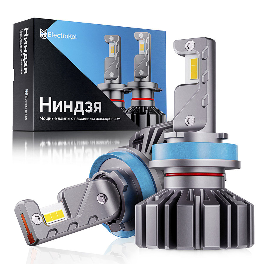 Светодиодные автолампы ElectroKot Ниндзя - мощная безвентиляторная модель, разработанная для установки в фары открытого типа, где разъем подключения вынесен из корпуса.