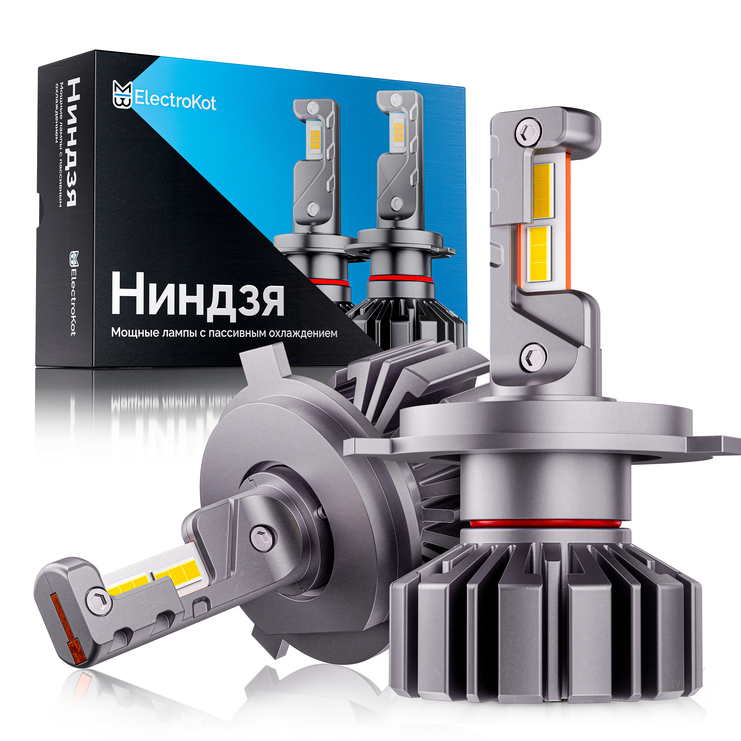 Светодиодные автолампы ElectroKot Ниндзя gen2 без вентилятора 6000K H4 2 шт