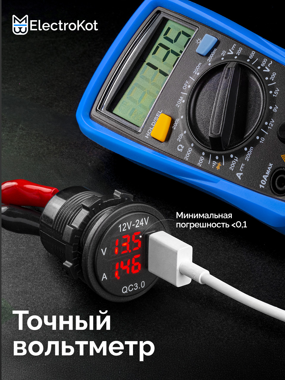 Теги: Амперметры, Вольтметр + амперметр, Вольтметр врезной, Вольтметры, Быстрая зарядка, USB с вольтметром, USB в машину, Приборы измерения, Врезные ЗУ