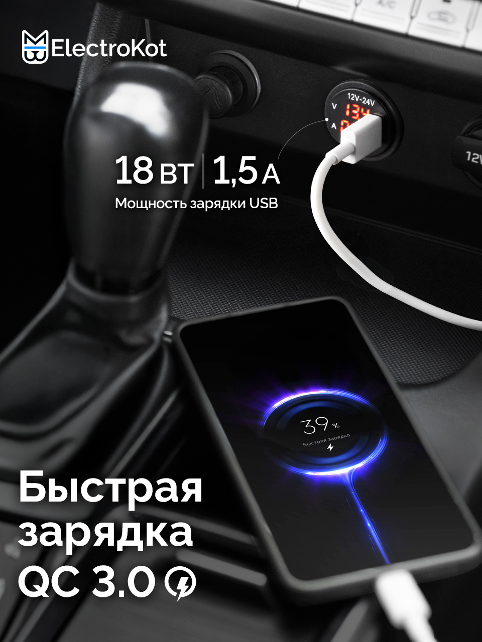 Особенности | Амперметр, вольтметр, быстрая зарядка, 1 USB |