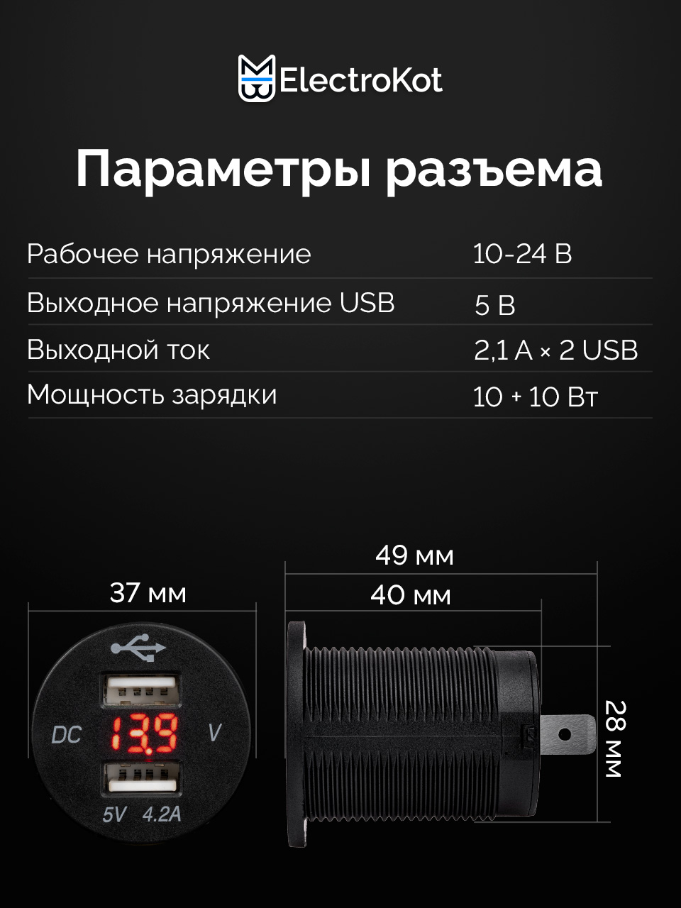 Теги: Вольтметр + амперметр, Вольтметр врезной, Вольтметры, Врезные ЗУ на 2 USB, USB с вольтметром, 2 USB в авто, USB в машину, Приборы измерения, Врезные ЗУ
