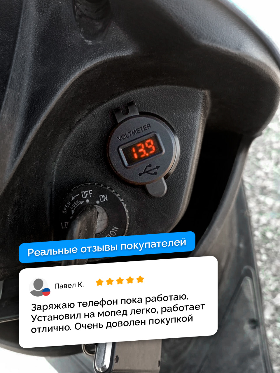 Адаптер отлично подходит для модернизации авто, мото транспорта, лодок или специальных приборов, с напряжением бортовой сети 12-24В. Также в комплект входят клеммы, с помощью которых устройство подключается к проводке бортовой сети.