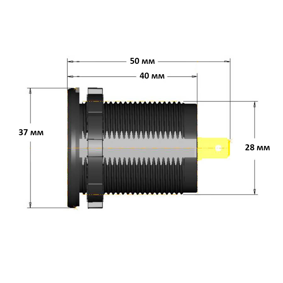 Корпус выполнен из качественных материалов, которые выделяются высокой прочностью и устойчивостью к повреждению. Также, у него довольно высокая степень защиты – IP67. Это означает, что разъем является пыле- и водонепроницаемым, если закрыта защитная крышка. Но даже без нее корпус легко справляется с воздействием влаги и пыли.
