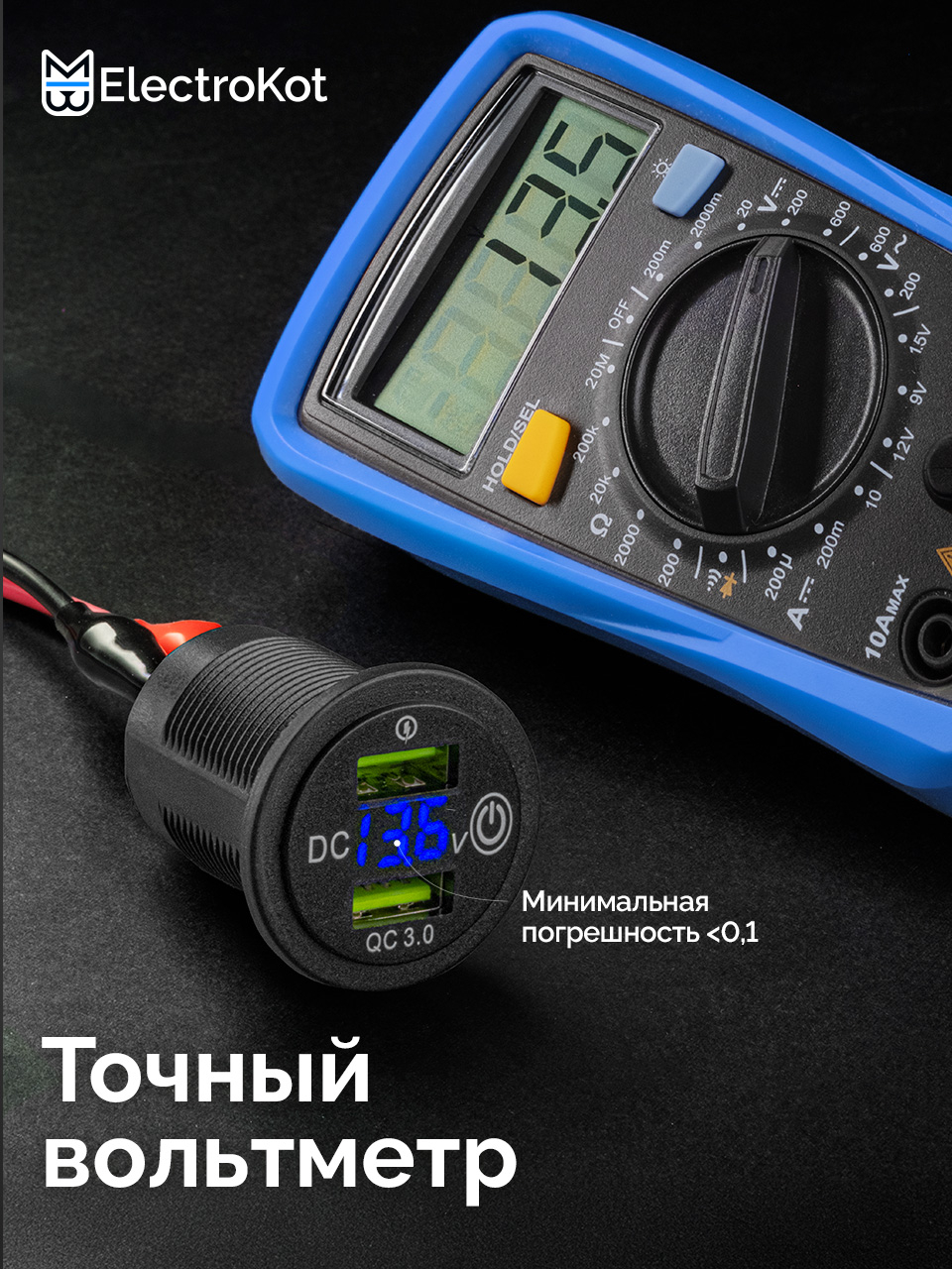 Теги: Вольтметр + амперметр, Вольтметр врезной, Вольтметры, Врезные ЗУ на 2 USB, Быстрая зарядка, USB с вольтметром, 2 USB в авто, USB в машину, Приборы измерения, Врезные ЗУ