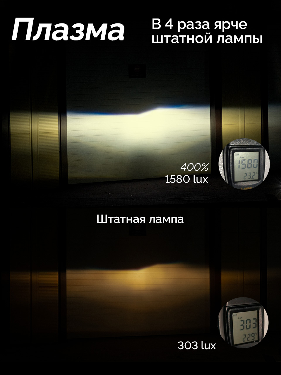 *В светодиодных лампах головного света для оценки яркости используется такой параметр как эквивалентный световой поток. Он характеризует увеличение яркости фар с использованием LED ламп по сравнению с галогеновыми лампами. Зависит от светового потока диодов, конструкции лампы, цветовой температуры, индекса цветопередачи CRI и увеличения восприимчивости глаз к белому спектру света в темное время суток.