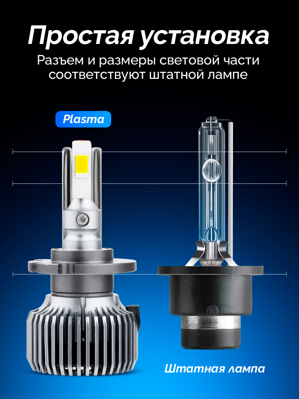 Светодиодные LED лампы для авто ElectroKot Plasma D-серии устанавливаются взамен ксеноновых ламп в обход штатных блоков разжига. В отличие от линейки ламп XeLED подключение осуществляется к линии питания 12 Вольт, специальный разъем подключения отсутствует. Особенно актуальны при выходе из строя дорогостоящих штатных блоков розжига.