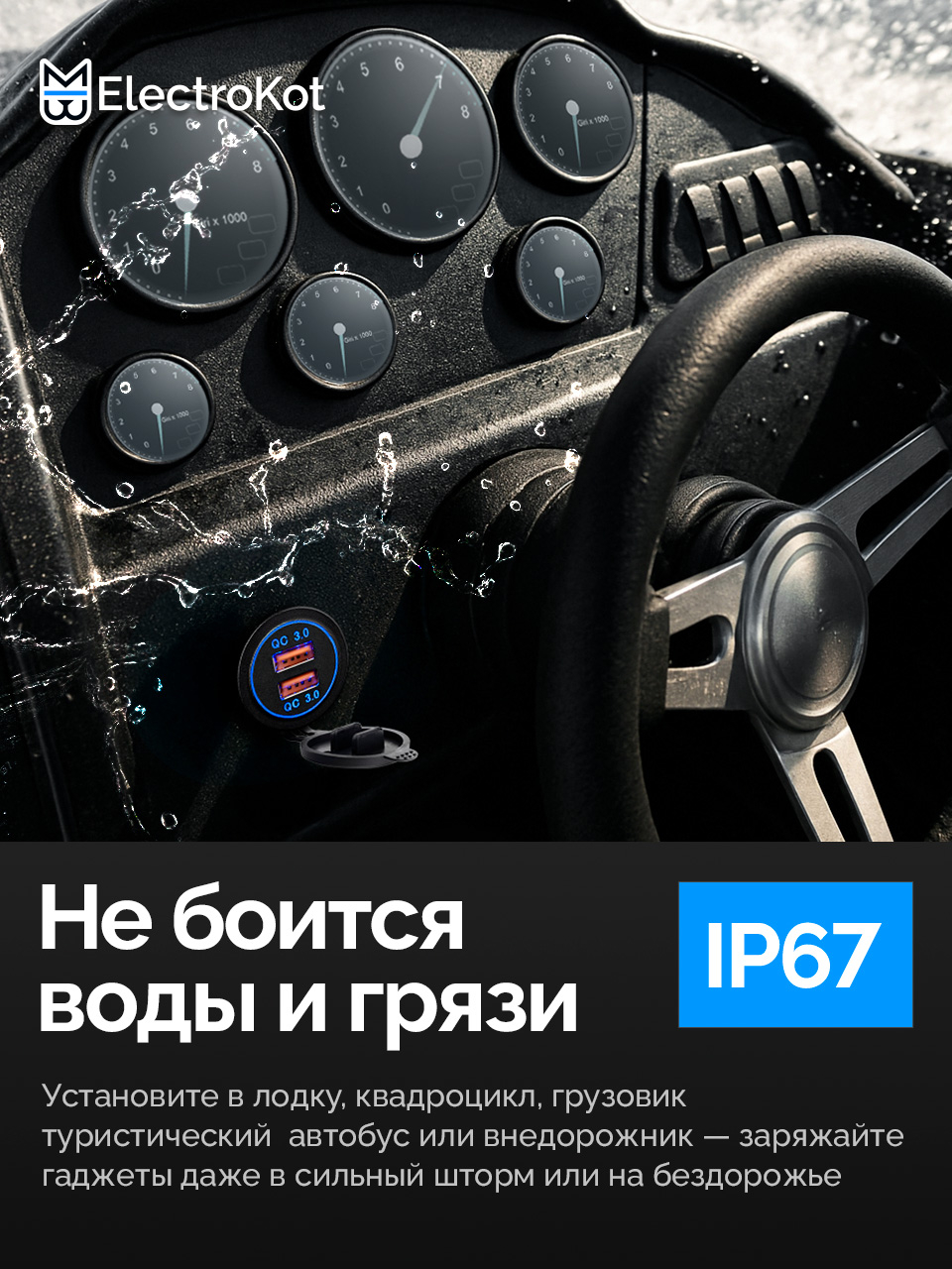 Разъем USB в авто врезной ElectroKot - розетка 2 USB QC3.0 с поддержкой быстрой зарядки.
